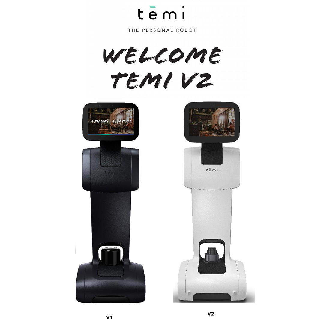 Temi features: Fully autonomous mobile robot, Interactive touchscreen, Voice and facial recognition.